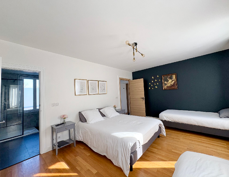 Cette belle chambre d’hôtes de qualité vous ravira ! Lumineuse et fonctionnelle elle vous offre la possibilité d’accueillir jusqu’à cinq personnes !